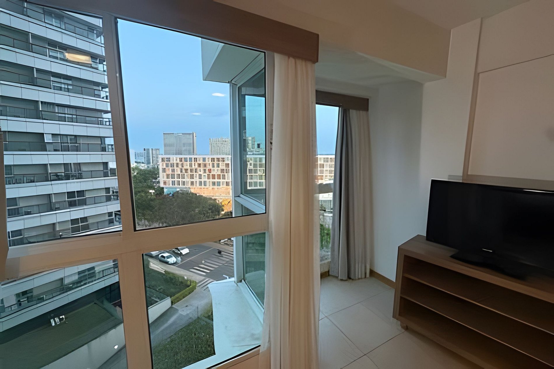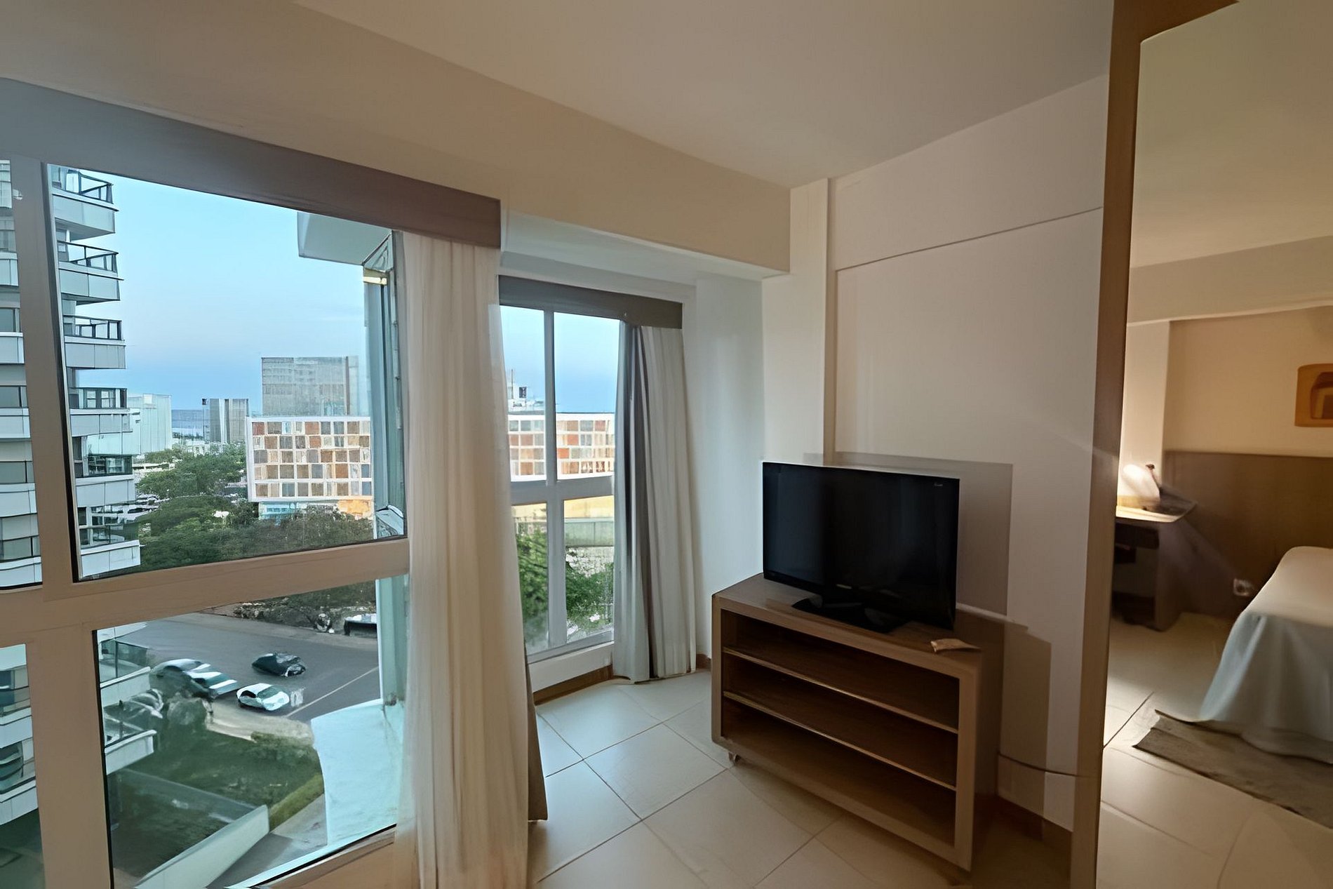 Hospede-se no coração de Brasília! Flat moderno e completo no Saint Moritz, localizado a poucos metros da Esplanada dos Ministérios, Shopping Conjunto Nacional e Torre de TV. Perfeito para trabalho ou lazer. O espaço conta com cama confortável, ar-condicionado, TV, Wi-Fi de alta velocidade, mini-cozinha equipada, mesa de trabalho e vista agradável. O prédio oferece piscina panorâmica, academia, lavanderia e recepção 24h. Tudo pensado para sua estadia ser prática, segura e confortável.